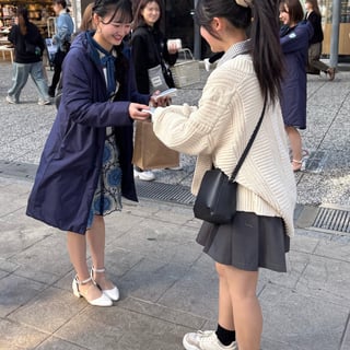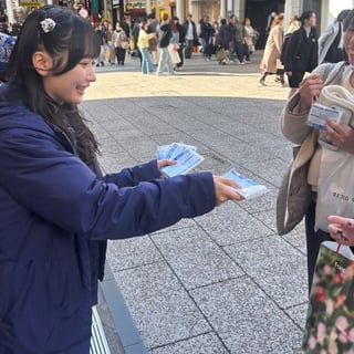 先輩たちの行動に4期研究生も手伝いに加わり、髙村栞里は“以前ティッシュ配りを実施したことのある先輩方に渡す時のコツを聞き、全力で取り組みました。街を歩く方1人ひとりに自分から声をかけること、直接伝えられる事に意味があると学びました”と語った。