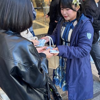 2期生の池田は“街中で「池ちゃんだー!」と声をかけていただけてすごく嬉しかったです。直接お会いして9周年コンサートをお知らせできる機会はなかなかないので、今日受け取ってくださった方が少しでも興味を持って会場に来てくださったら嬉しいです”と語った。6名は道ゆく人1人ひとりに“STU48です!”と声をかけながらティッシュを手渡し、笑顔でコンサートをアピール。