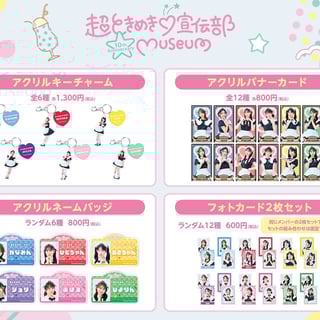また、1月17日(土)よりhmv museum 渋谷5からスタートし、2月14日(土)からhmv museum 西宮にて巡回開催する『超ときめき♡宣伝部 10th Anniversary museum』の開催記念グッズのデザインを初公開。“喫茶店”をコンセプトにした展示会ならではの開催記念グッズをぜひチェックを。さらに、超ときめき♡宣伝部 @Loppi・HMV受注生産限定グッズの発売が決定。museumグッズとは異なる撮り下ろし写真を使用したアクリルブロックとミニタペストリーが発売となる。受注生産グッズとなっており、こちらもお見逃しなく。
