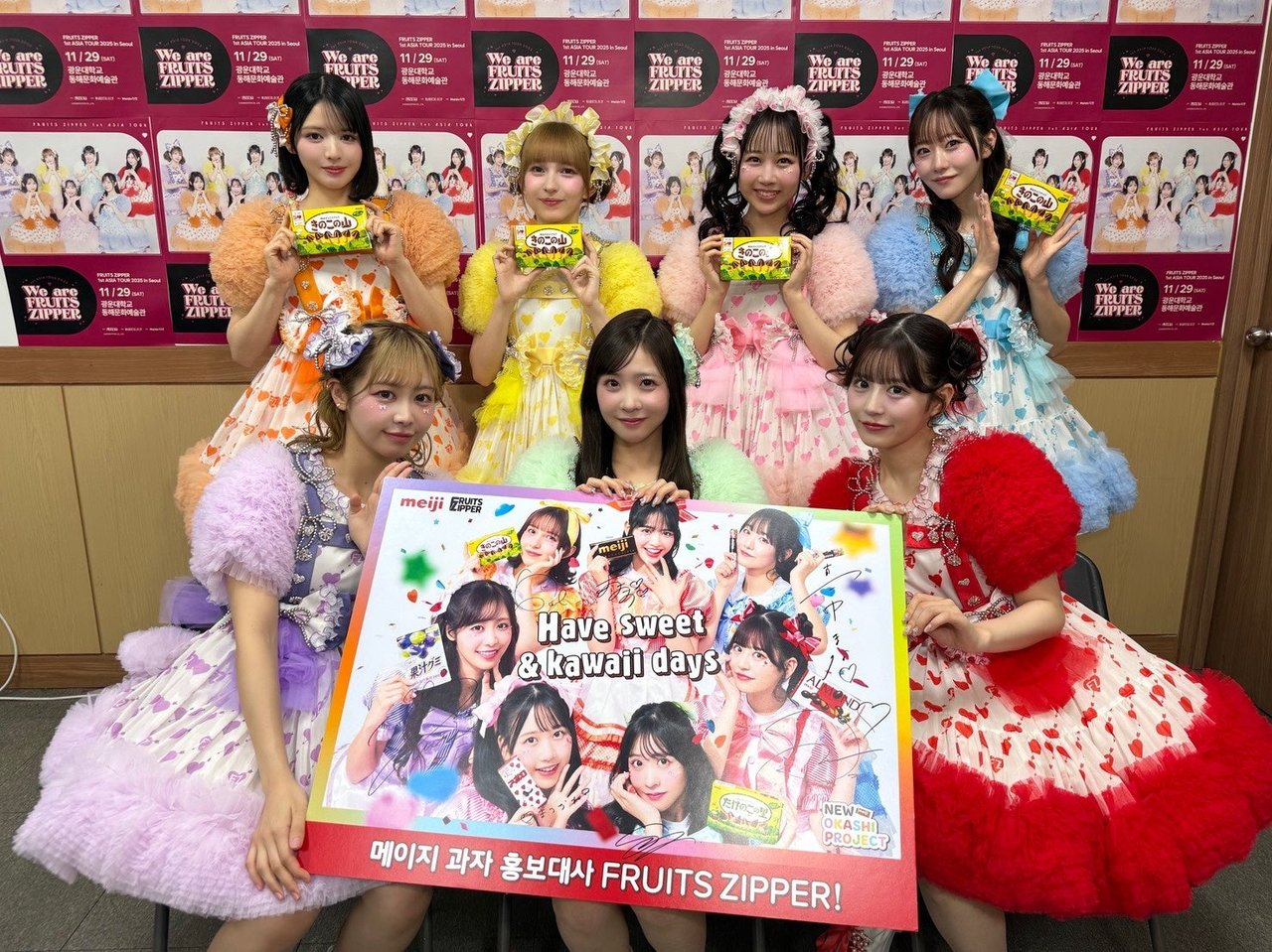 株式会社明治が、「明治おかし大使」を務める7人組アイドルグループ・FRUITS ZIPPERのグループ史上初となるアジアツアー『FRUITS ZIPPER 1st ASIA TOUR 2025「We are FRUITS ZIPPER」』を応援。原宿から世界を目指す同グループの活動と、お菓子を通じて世界中の何気ない1日を“チョコっといい日にしたい”同社の想いが合致し、2025年10月から11月にかけて、台北・上海・ソウルの3都市にてFRUITS ZIPPERとともに現地のファンに向けてお菓子のPRを実施した。