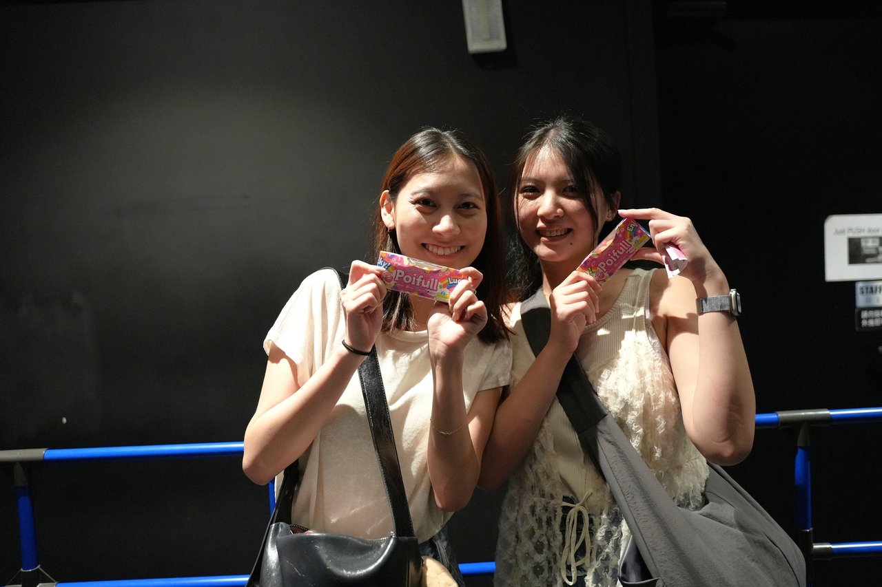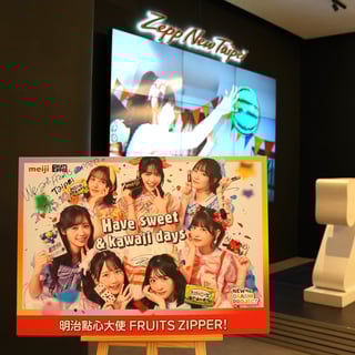 アジアツアー初日となる台北公演では、小粒ソフト糖衣グミ「ポイフル」のサンプリングを実施。会場内ではCM放映に加え、現地でFRUITS ZIPPERが直筆したサインパネルを設置。多くのファンが足を止め、受け取ったポイフルを手に写真撮影を楽しむ姿が見られ、賑やかな雰囲気が広がった。