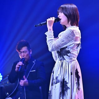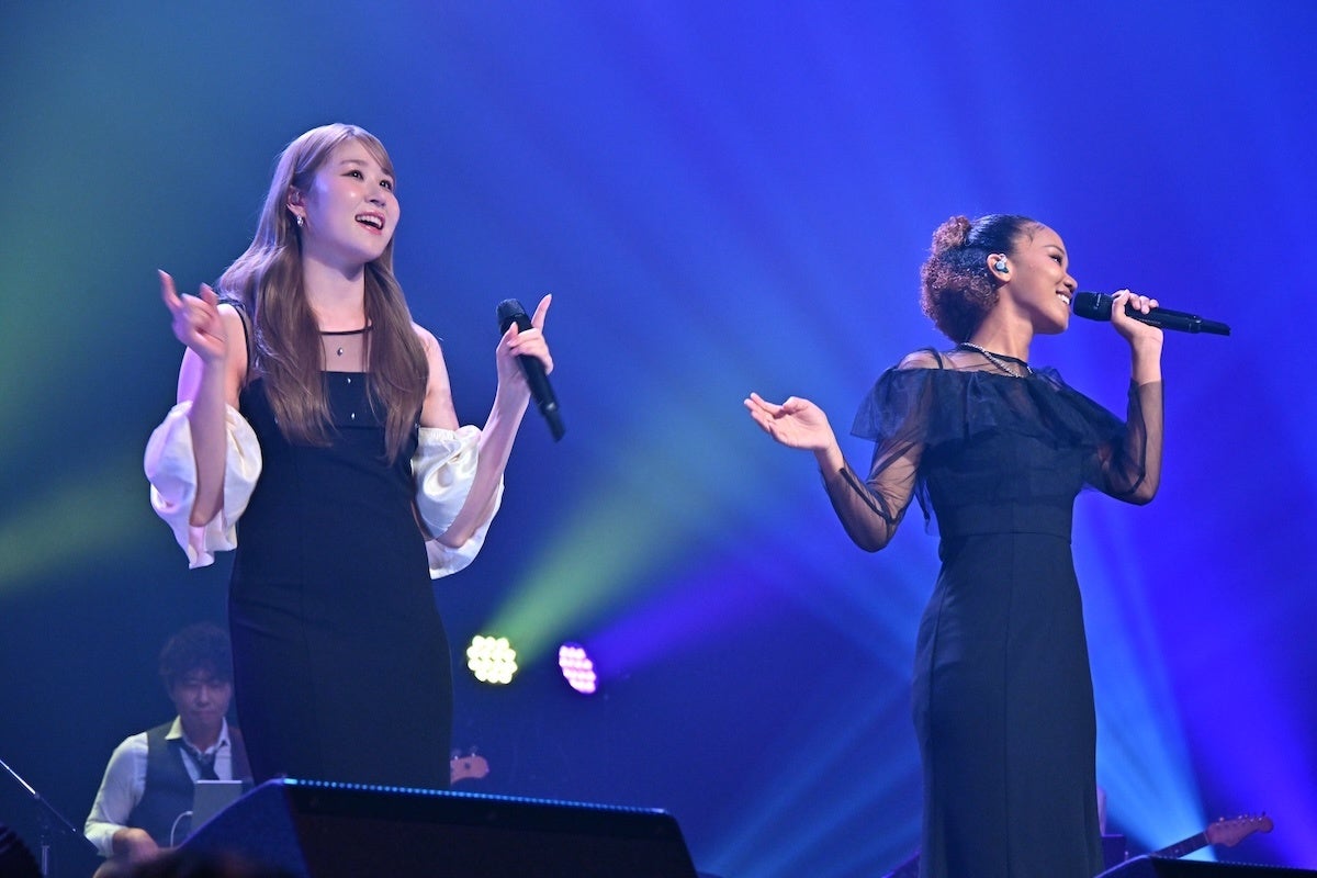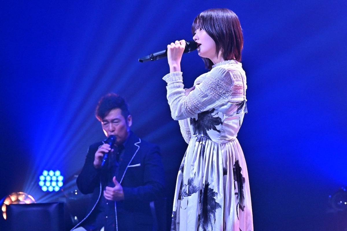 かれんとmiyouがステージを後にし、中西のソロ歌唱へ。ちなみに『Spicy Sessions –THE LIVE–』前半(第1部)では、黒沢が自身のソロ曲「夢みる頃を過ぎても」を歌唱している。“自分が(乃木坂46の)センターとして立たせてもらっている曲の中でも、好きな曲。バンドのみなさんのアレンジで、またお聴かせできたら”と、中西が選んだ曲のタイトルを告げる。「思い出が止まらなくなる」(乃木坂46)。タイトルだけで、あちこちから歓喜の声が上がった。中西は“星空に届きそうな”という歌詞に合わせて、手を空に向けて差し出すようなジェスチャー。言葉を1音1音、確かめるように置いていく。歌詞の余韻が、客席の隅々まで行き渡っていく。先述したセッションでの柔軟性や、声量のコントロールとはまた異なる、ソロならではの集中力が際立つ瞬間であった。初回放送から半年間ほど、黒沢からのリクエストに対して中西は、教えてもらった通りに頑張る、という取り組み方だったように思う。2年を経て彼女は、自分のオリジナリティを求める表現の探求者になっていると感じた。