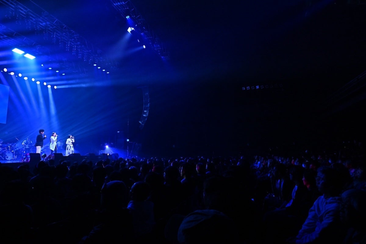 バンドセッションに導かれるようにMCの2人がステージへと再び登場。会場からは大きな拍手が起こる。黒沢の“生バンドでの本格的なライブは初めて?”という質問に“はい。お客さんとバンドメンバーとの板挟みになっている感じ”と、中西“独特”の初手が決まり、会場の空気が和んでいく。「第2部」1組目のゲストとして呼び込まれたのは、Little Glee Monsterのかれんとmiyou。モータウン調のブライトチューン「Pop Like A Star」をカラフルなライティングの中で披露した。第11回(2024年11月放送)に出演したかれんとmiyou。出演後の反響がすごかったと語るかれんは、黒沢ファン、中西ファンからも反応があって嬉しかったと明かす。番組出演時に披露したセッション曲に“ひとスパイス”加えてお送りする“リバイバルセッション”では、かれんと中西で、三浦大知の「ふれあうだけで~Always with you~」、miyouと黒沢でダニエル・シーザー&H.E.R.の「Best Part」を続けて歌唱した。歌う前に“今日のアルノちゃんのフェイクは前よりパワーアップしてそう”と期待を寄せていたかれん。歌唱中、中西が歌うパートで、同じように口を動かしながら、幸せそうな笑顔を浮かべる姿が印象的だった。続いて披露された「Best Part」では、黒沢とmiyouが魅せた。miyouは、昨年の番組出演時に“もう1回やりたい”って冗談で言ったら本当になったと、歌唱前に話していたが、その第11回の収録時よりも艶っぽさ、そして滑らかさが増した印象。曲の後半、お互いの歌声を探りながら、ロングトーンでせめぎ合う。バンドサウンドが2人に引っぱられて、サウンドのレイヤーを重ねていく。セッションとデュエットソング、2つの真骨頂を同時に発揮し、そのエネルギーに観客の気持ちが高揚していく。歌唱後“終わらないかと思った”とmiyouの第一声。かれんが“セッションしてましたね!”と感想を述べる。miyouは“止まらんかった”、黒沢は“お互いロングトーンでいっちゃうと、戻れないよね”と、とても楽しそうであった。今回のリバイバルセッションは、過去の再現ではない。番組の積み重ねを踏まえた上で“今、同じメンバーでやったらどうなるか”を体現するスタンスなのだと思った。