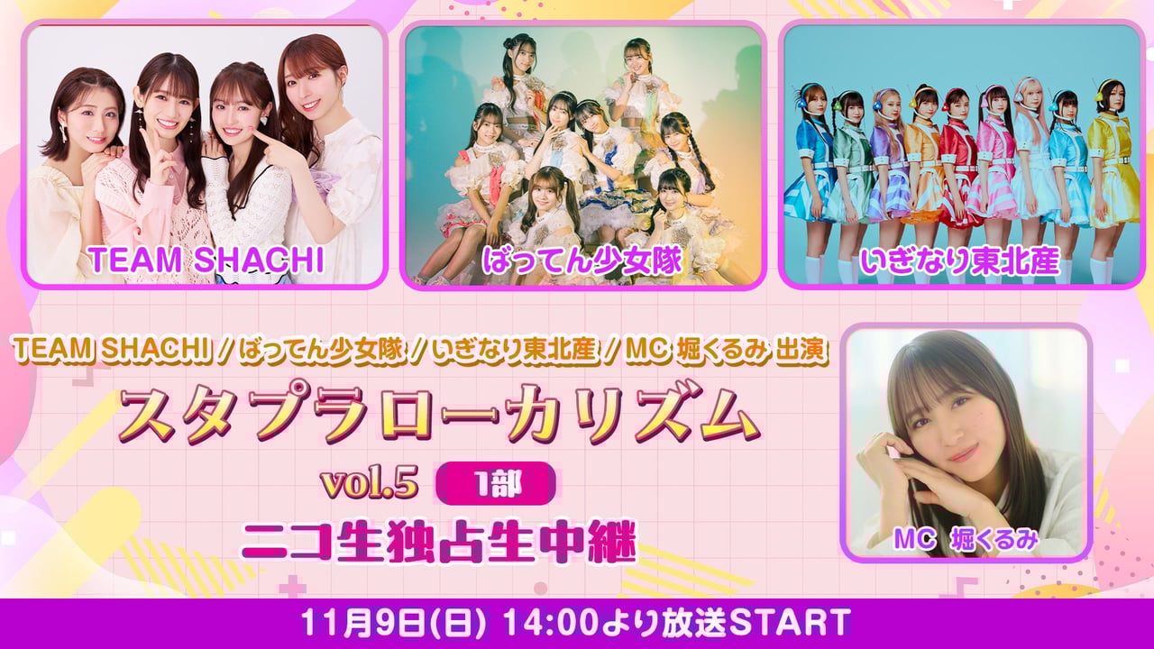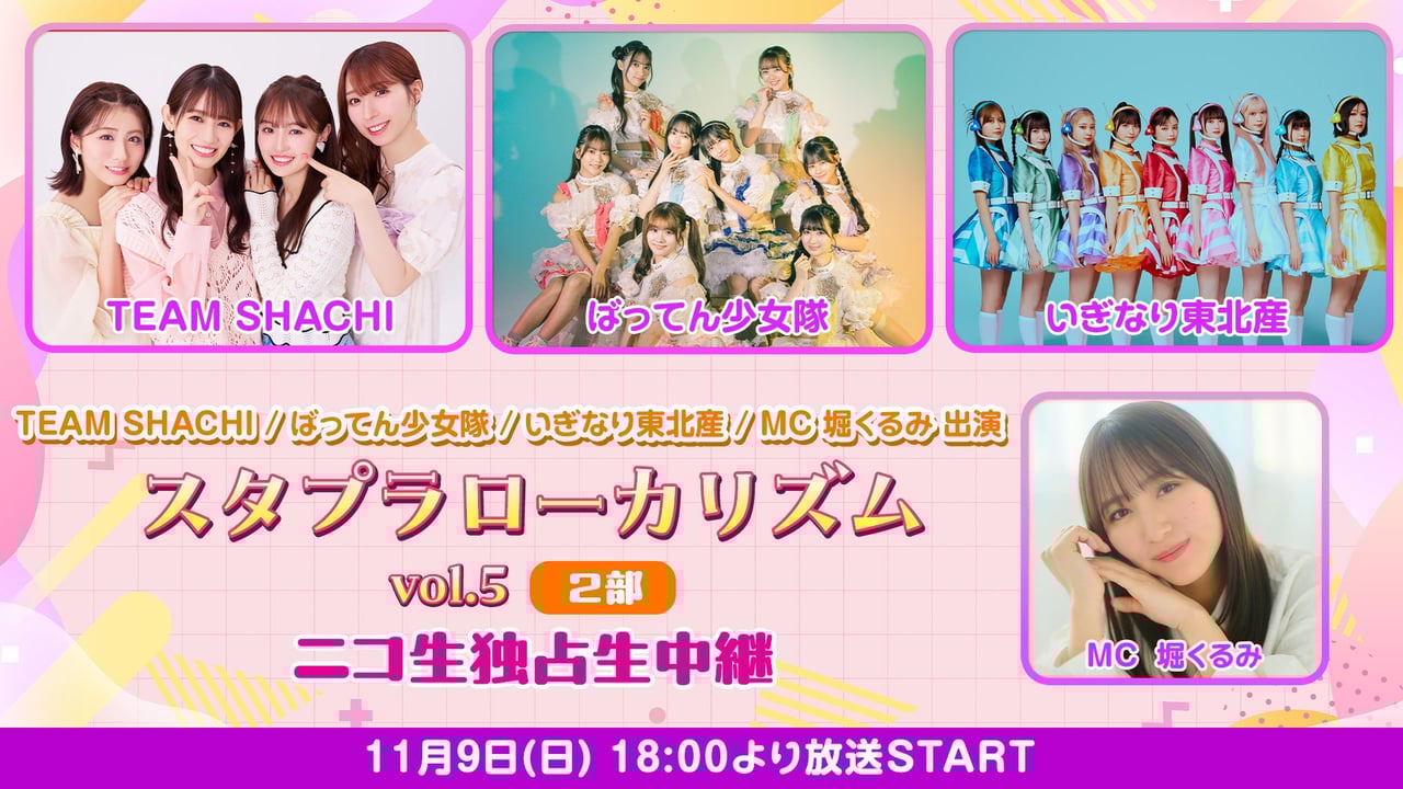 TEAM SHACHI / ばってん少女隊 / いぎなり東北産 / MC 堀くるみ 出演 『スタプラローカリズム vol.5』2部 ニコ生独占生中継