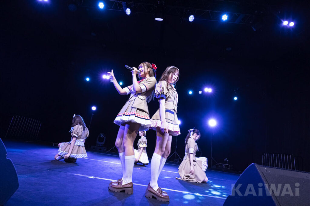 ラストは「ときめきラストノート」。会場の大コールを受けて、全力で踊り、ユニゾンで絶唱。最後は“今日ここに立てたのはみなさんのおかげです。絶対にメインステージに立って最高の想い出を作りたいです”の言葉を残してステージをおりた。豊富な運動量ではつらつとパフォーマンスする姿は、多くの観客の心を動かす感動的なものだった。