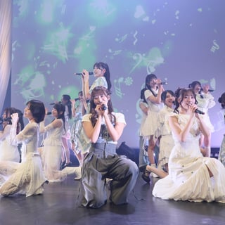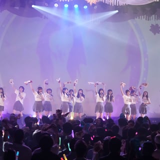 会場に集まった満席の観客が見守る中、2部の公演がスタート。Overtureが流れると上手、下手の二手に分かれたメンバー16人がステージに登壇。可憐なホワイトがまぶしい新制服に身を包んだメンバー全員がメジャーデビュー曲「I L U」を熱唱すると観客のボルテージは一気に急上昇。続く「恋愛変格活用」で会場は大コールが巻き起こり、早くも最高潮に突入。続いて2ndデジタルシングル「つまり」、16人全員バージョンの「3秒ルール」の連続パフォーマンスで会場は熱狂に包まれた。