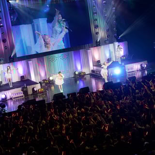 1曲目の「キラリ☆」が始まった瞬間、会場の景色は一変する。ペンライトの光が、彼女たちのドレスやミラーボールの輝きと共鳴するように、一斉に“白”へと変わったのだ。ファンは思い思いに光を振り、16年前に産声を上げた物語の集大成を、全身で、最高の笑顔で迎え入れた。ここから、最後にして最大の物語が動き出した。