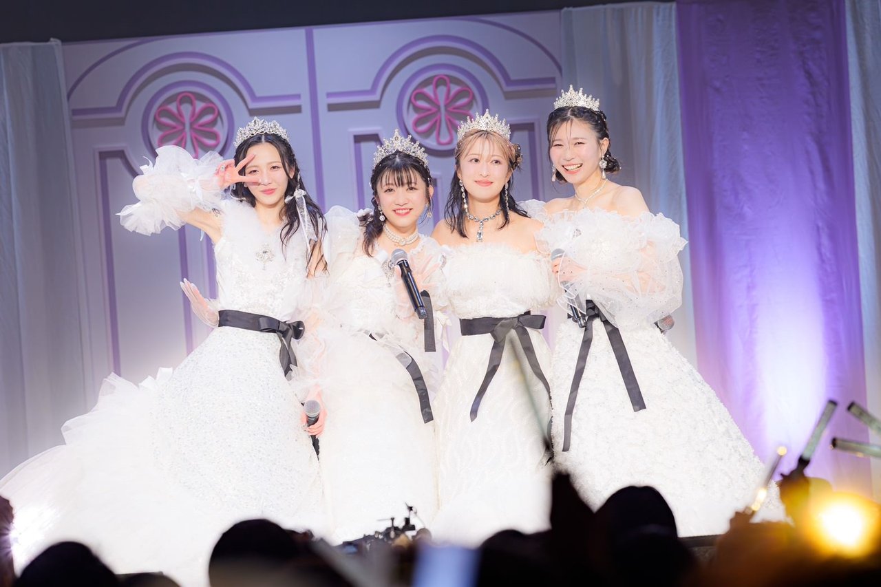 再び光が射したステージ。そこに現れた4人は、この日のために誂えられた特別なドレスを纏っていた。