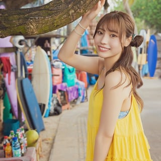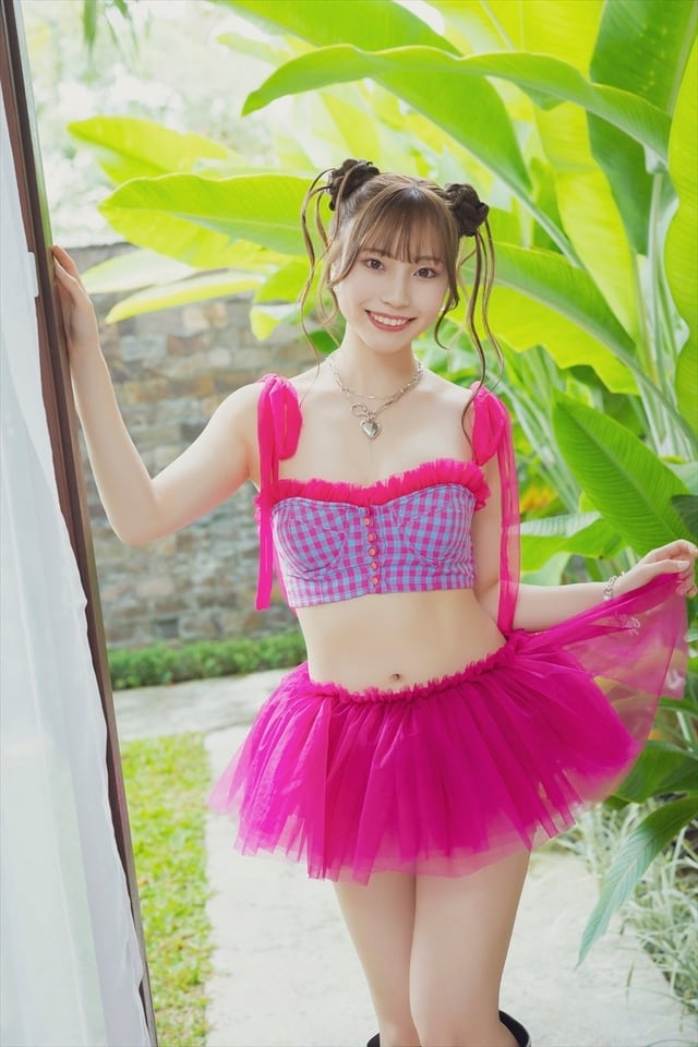 初バックショットも披露しており、露出多めながらも、可愛らしい雰囲気の写真集に。プールで浮き輪を持ってはしゃいだり、バリの海で波と戯れたりと、撮影というより“遊び”の延長線上のような、彼女の自然体の姿を収めた内容となっている。