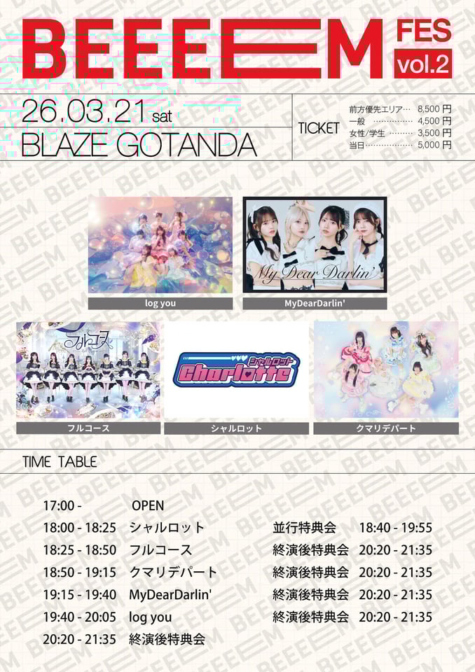 log you、MyDearDarlin'、クマリデパート、フルコース、シャルロット出演 ── ガールズカルチャーメディア『BEEEEM』主催ライブイベント<BEEEEM FES vol.2>開催決定