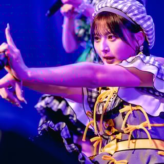一転、「あの空はずっとキミの色」ではポップなサウンドに乗ってキュートなパフォーマンスをくり広げていく。かと思えば、「New World」では凛々しい雰囲気をたたえながら、真っ直ぐに歌い上げる。中本こまりのラップ風なパートも織り交ぜつつ、7人が想いを届けるかのようにしっかりと歌う姿が印象的だった。最後は小野寺梓が会場を包み込むような熱唱を聴かせてしめくくった。