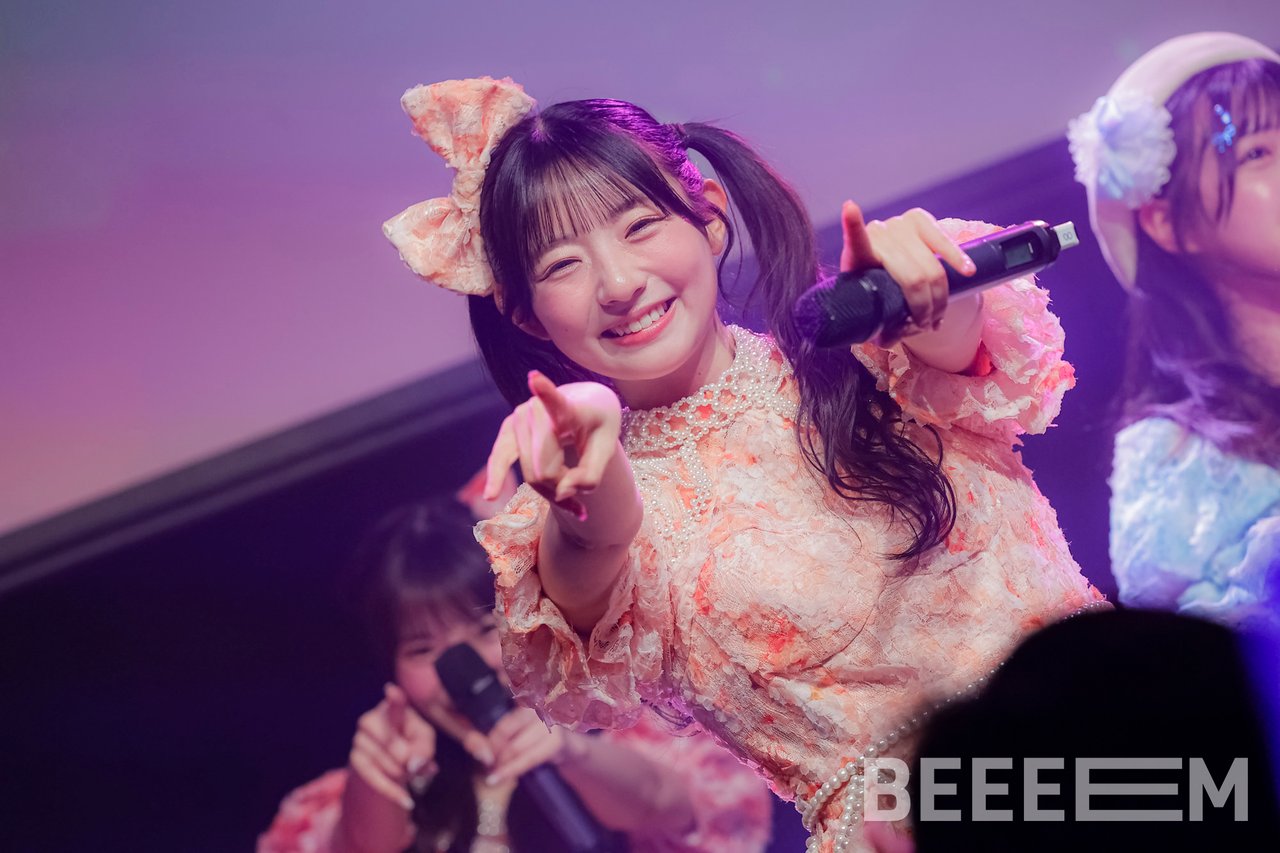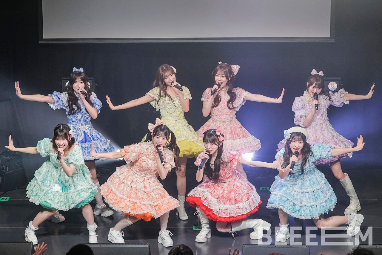 歌い終わった後の自己紹介では、月代が “<BEEEEM FES>ということで、ぱんちゃんが絶対結婚しようなビームを浴びせるので、みなさん結婚してくださいね!”と告げ、フロアに向かって“ビーーーム”をお見舞いすると、ファンたちも“わあああああ〜!”とリアクションしながらしっかりと受け取めた。