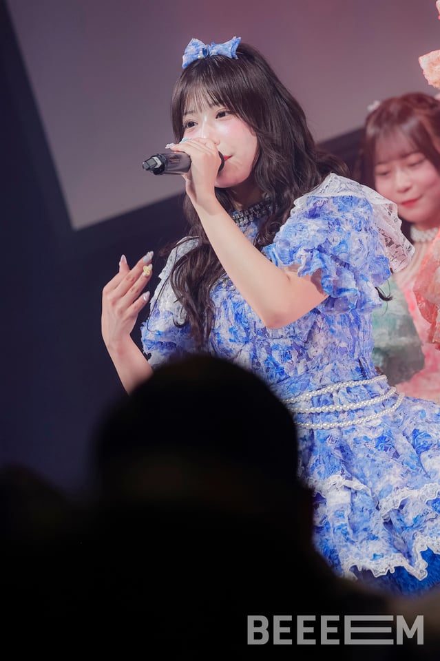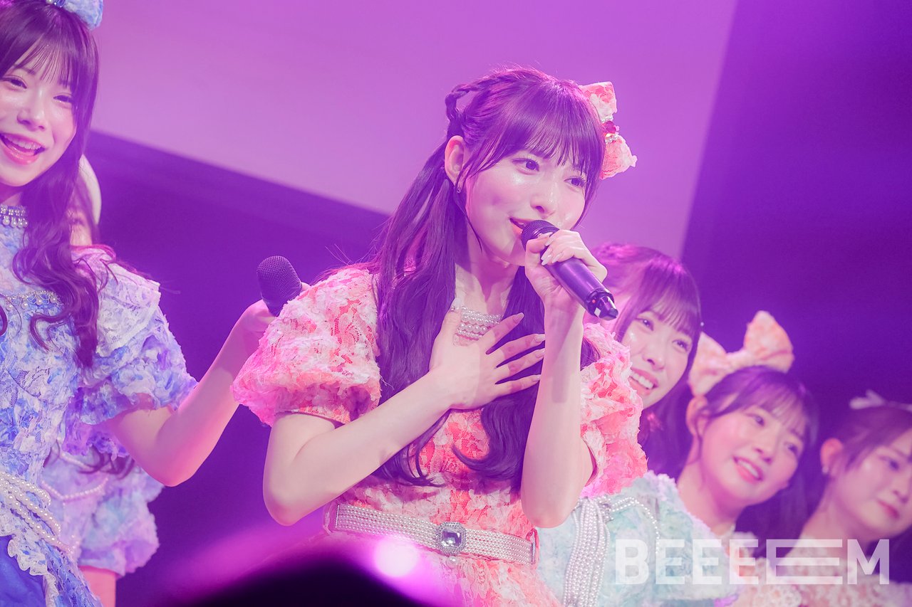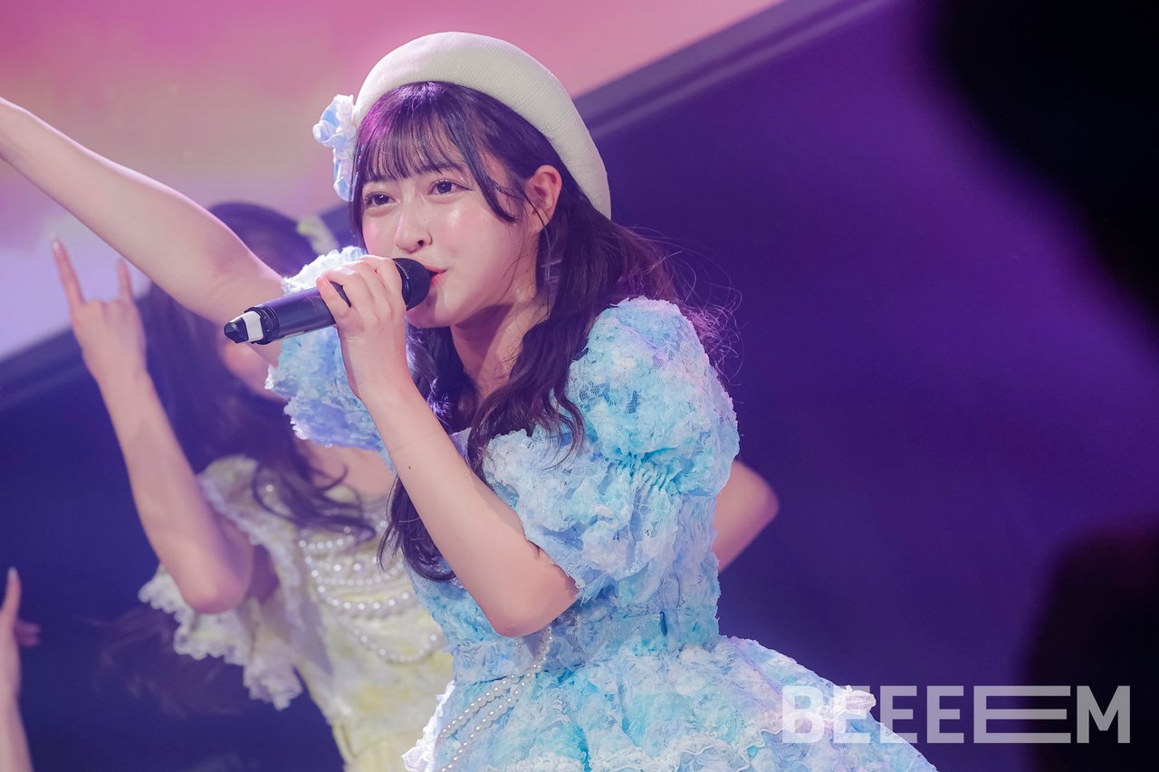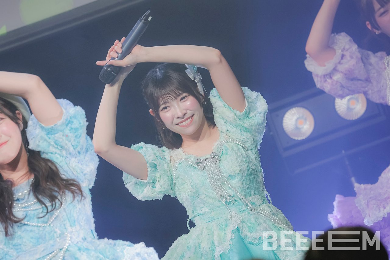 一転して、「変更線」は夜明けのイメージ。低音からじわじわと感情を動かすように歌い、日付変更線を意味する《デートラインの先へ》と希望の光を見せる。変更線を表現した指差しの振り付けがピタリと揃い、ファンと一緒に手を振る光景も印象的だ。「初恋モーメント」では、歌い出しの久保怜音の澄んだ歌声と、福本れみの優しい歌声に癒される。井出叶の可愛らしい歌声も映え、山下うみの落ちサビも穏やかで安心感がある。